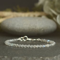 This handmade labradorite bracelet features 41 AAA-grade, micro-faceted labradorite beads, each catching the light with its signature blue flash. Professionally strung on strong, flexible wire, it drapes gracefully against the wrist. Finished with hand-formed sterling silver double loop ends and a secure lobster clasp, it’s perfect for everyday wear or stacking with other favourite bracelets.