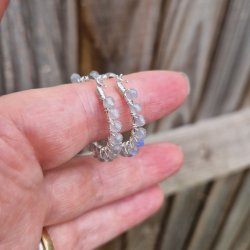 Shifting shades of silver and blue catch the light with every turn—these labradorite hoop earrings are made to move with you. Hand-wrapped with care and subtle sparkle, they add a flash of intrigue to your everyday style.