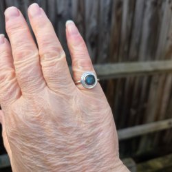 This ring offers visual interest without feeling bold or overpowering, making it easy to wear every day. The blue flash in the labradorite shifts gently as you move your hand, creating a sense of depth and presence. The hammered band adds texture and individuality, ideal if smooth, polished rings feel too plain. It is a piece that feels considered and personal rather than mass-produced.