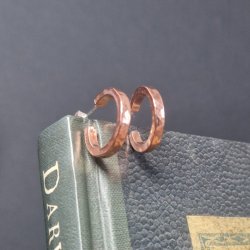 Small Hammered Copper Hoop Earrings with Silver Posts