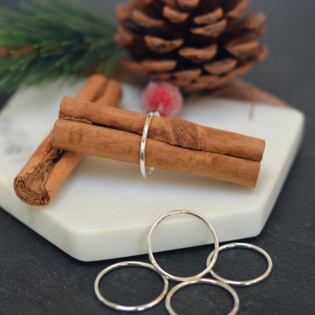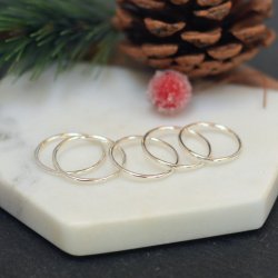 This simple sterling silver stacking ring is crafted from 1.5mm round wire and finished with a soft hammered texture that catches the light beautifully. Lightweight, comfortable, and designed for everyday wear, it’s an easy way to add a touch of character to your jewellery line-up — or build your own unique stack.